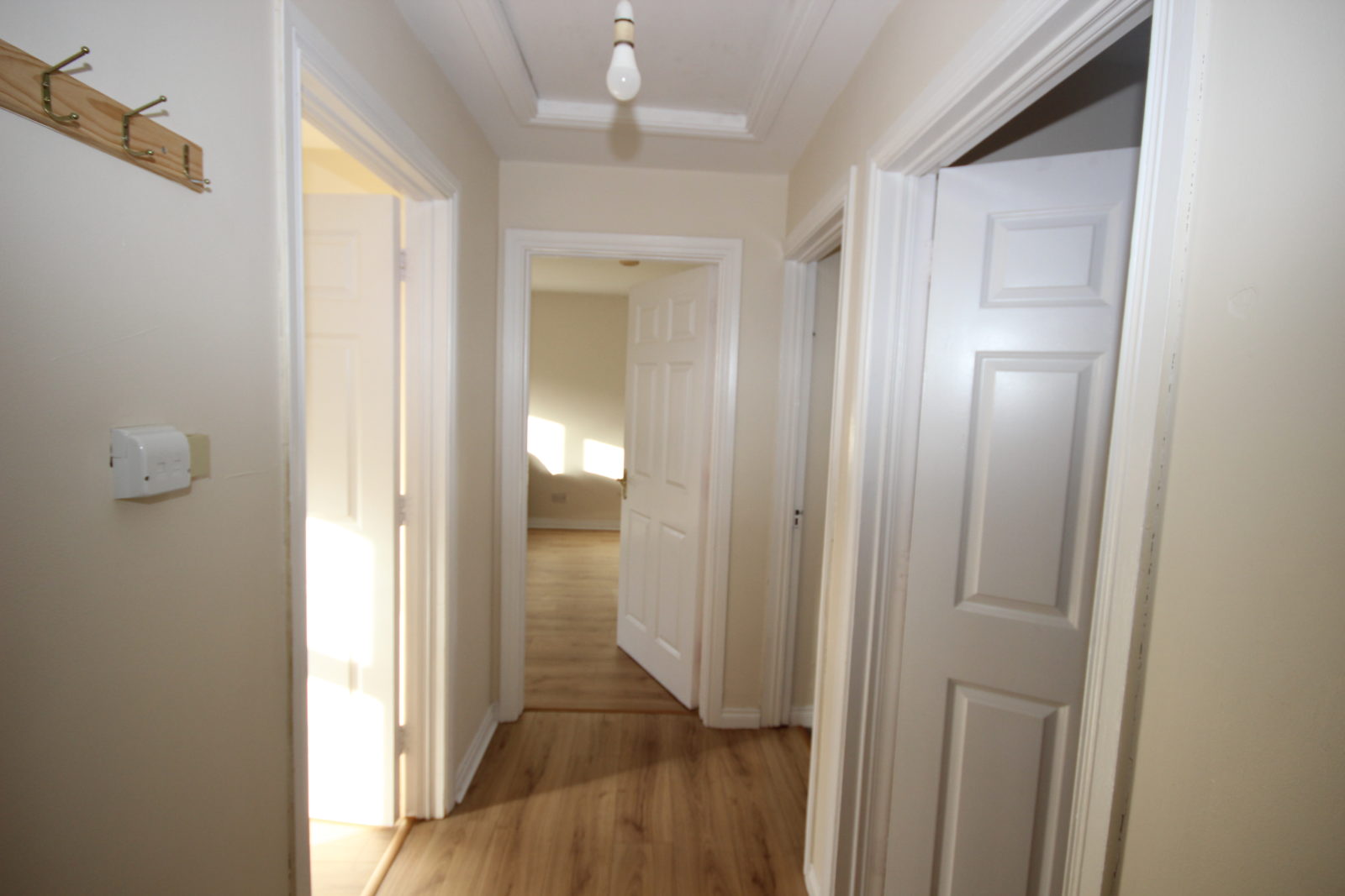Within walking distance to the town centre, this apartment block is located just off the main street and has parking to the front. No 61 is on the top floor and is available to rent immediately. It is freshly painted throughout, new electric heaters and has new flooring in the living room, hall and two bedrooms.
