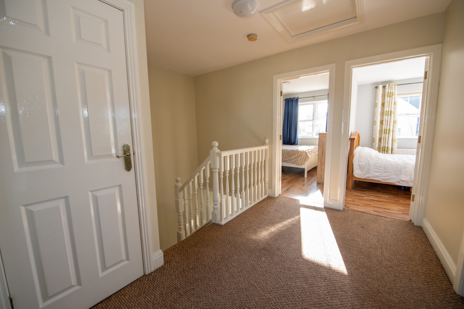 Landing; 3.86m x 3.08m loft access, door to hot press