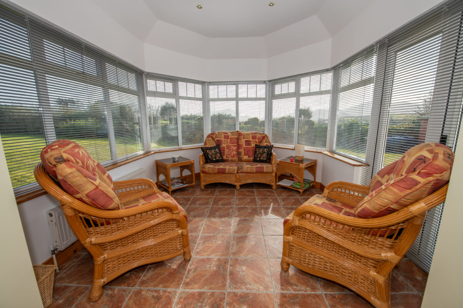 Sunroom; 2.95m x 3.26m tiled flooring, recessed lighting, double fully glazed white PVC doors out to the outside terrace