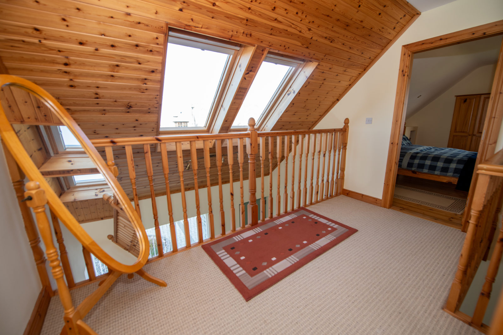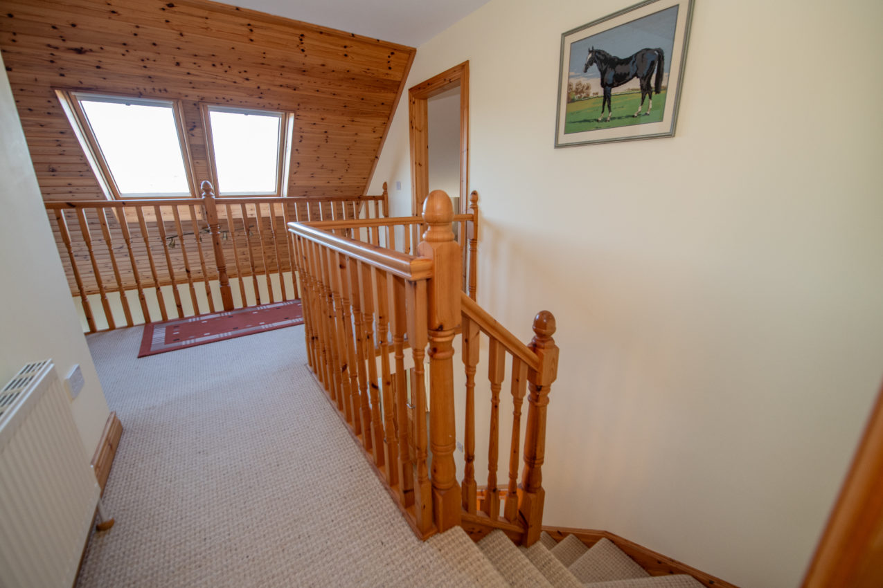 Landing; 3.59m x 3.43m includes an open void overlooking the ground floor, twin Velux windows providing excellent natural light, loft access, door to;