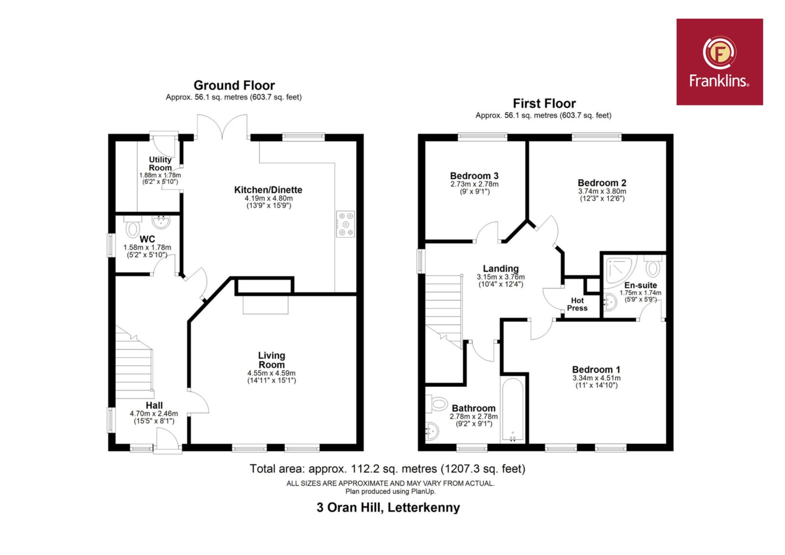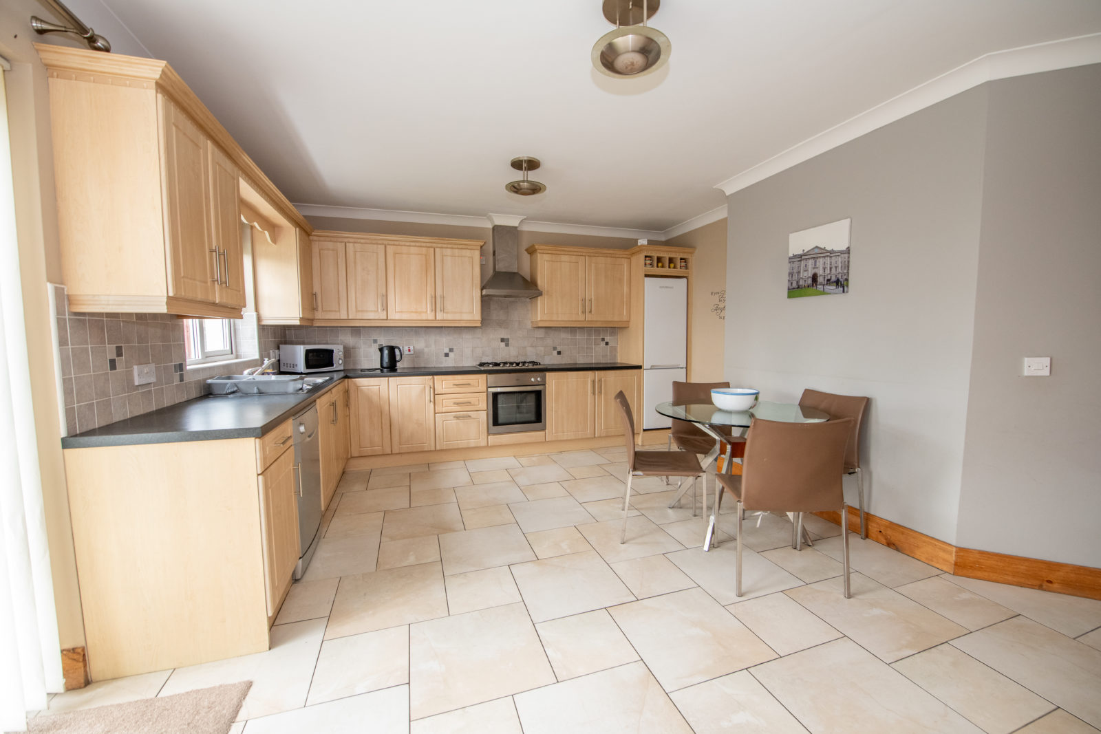 Internally, this spacious home extends to approximately 1,207 sq. ft. across two floors and offers well-proportioned accommodation throughout. The layout includes three bedrooms (one ensuite), a bright living area, and modern kitchen/dining space.