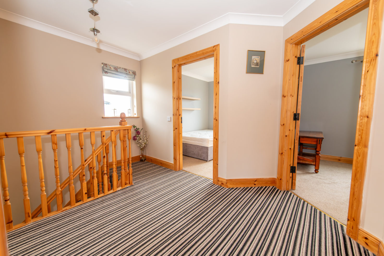 Landing; 3.15m x 3.76m carpet flooring, loft access, door to hotpress