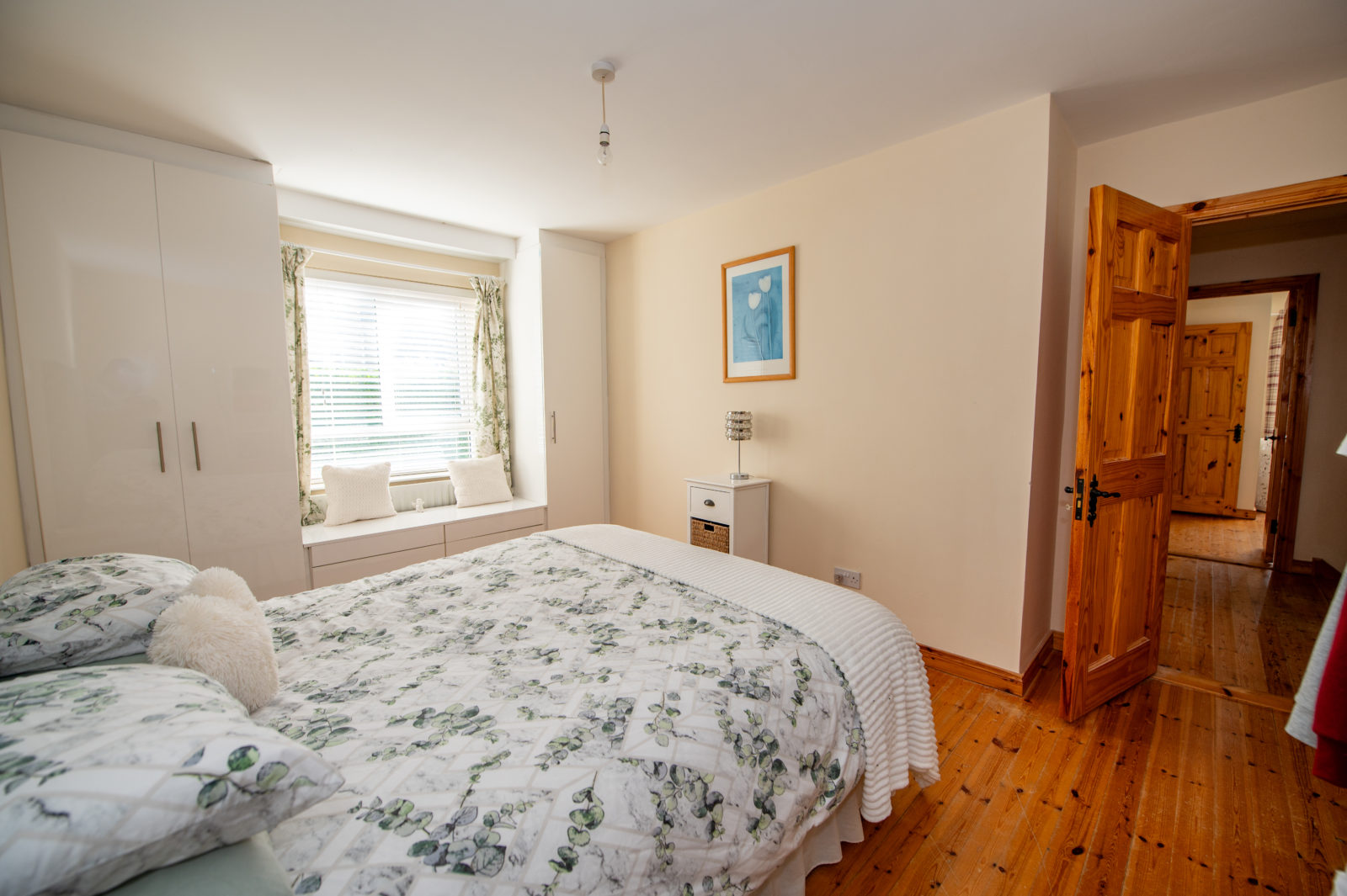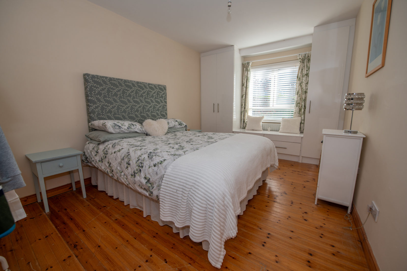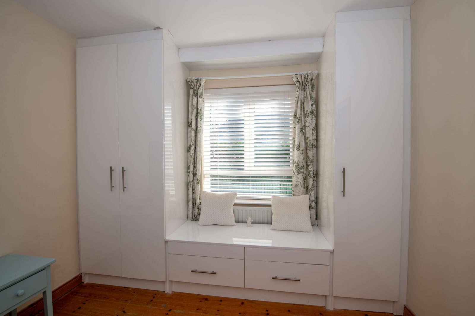Bedroom 2; 3.59m x 4.70m (rear) pine wooden floor, floor to ceiling built in wardrobes with built-in window seat with further storage under