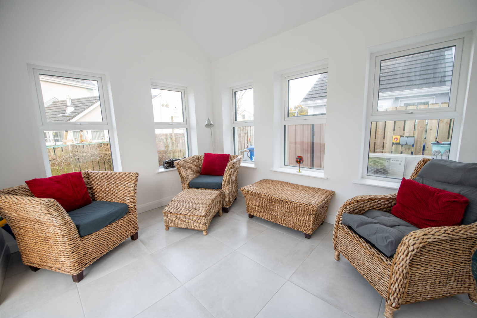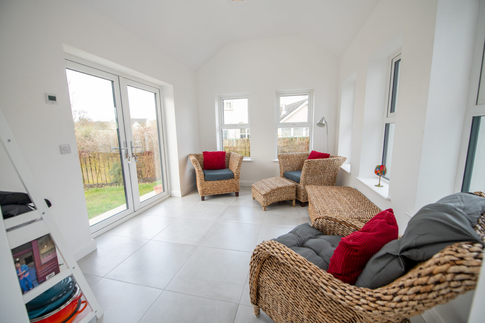 Sunroom; 2.92m x 3.68m tiled flooring, impressive vaulted ceiling, double fully glazed south-facing doors opening to the rear garden & patio area filling the space with natural light