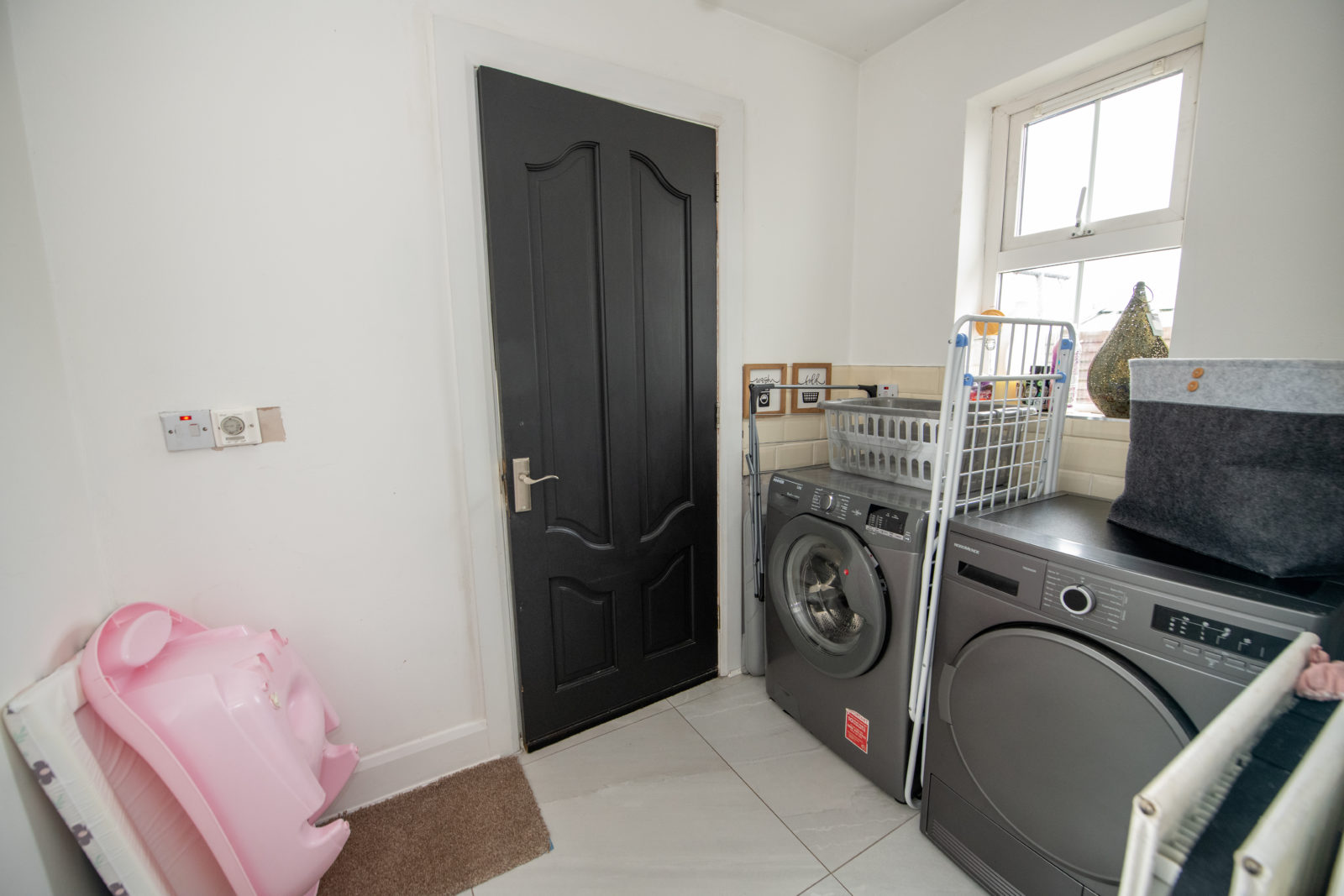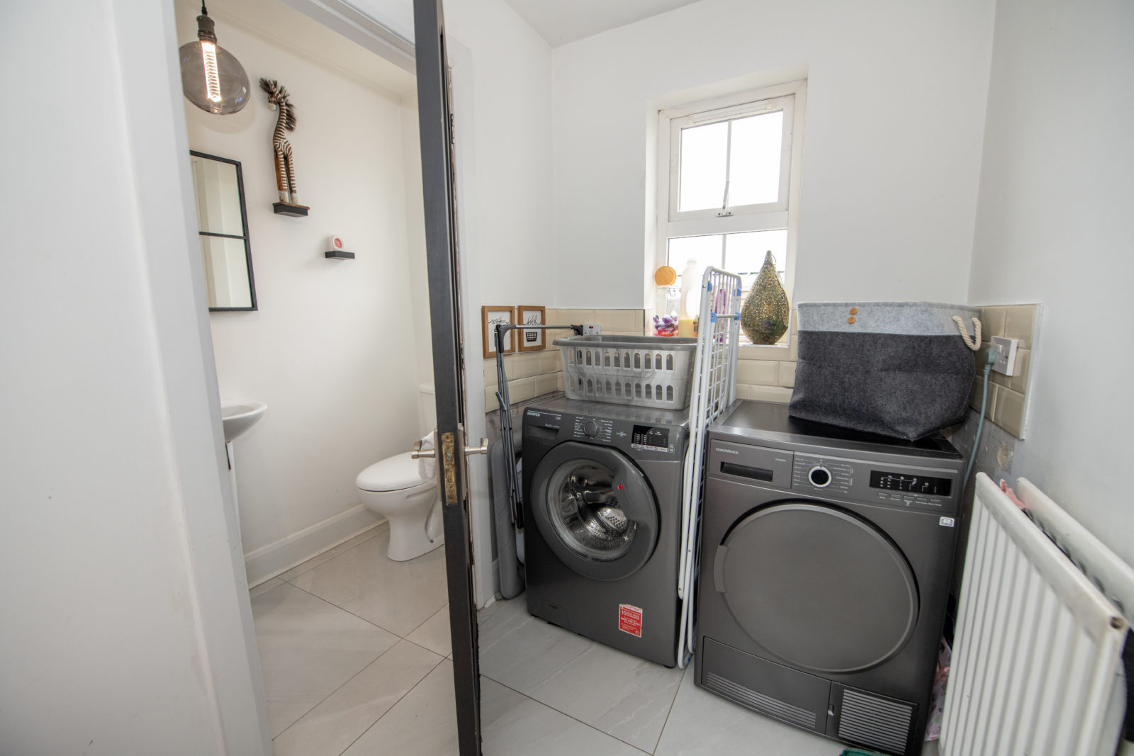 Utility Room; 1.59m x 2.31m tiled floor, plumbed for washing machine & wired for tumble dryer, door to outside, separate door to;