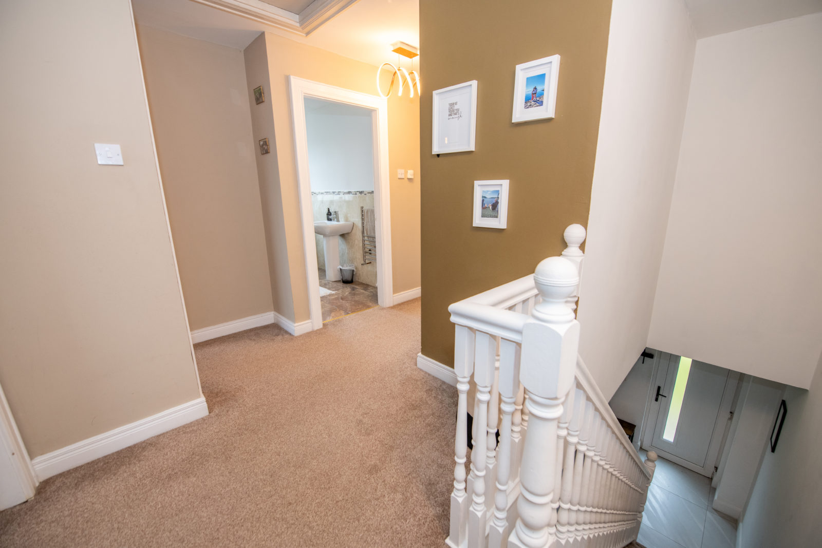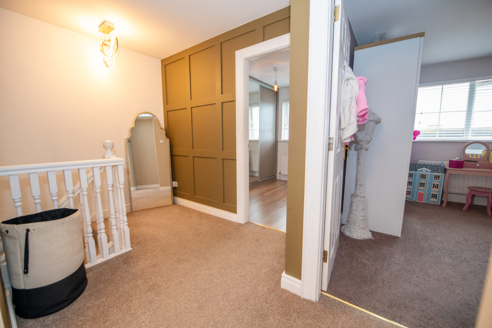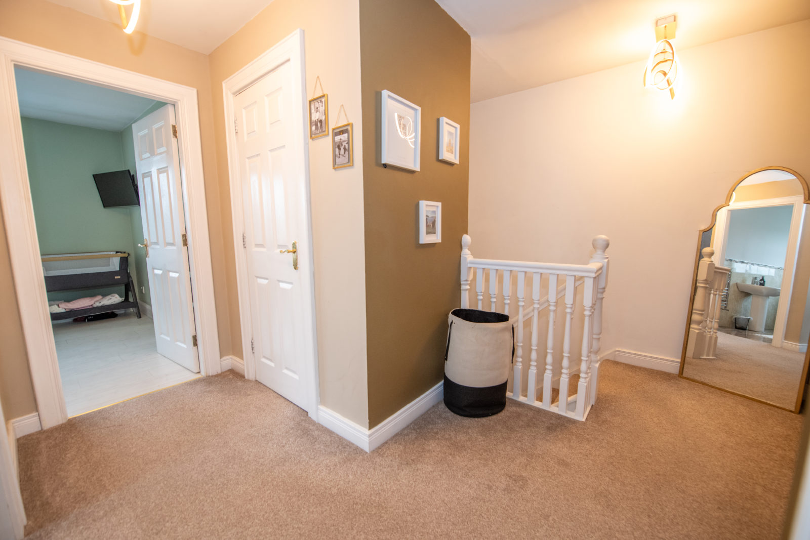 Landing; 3.55m x 3.66m loft access, door to the hot press