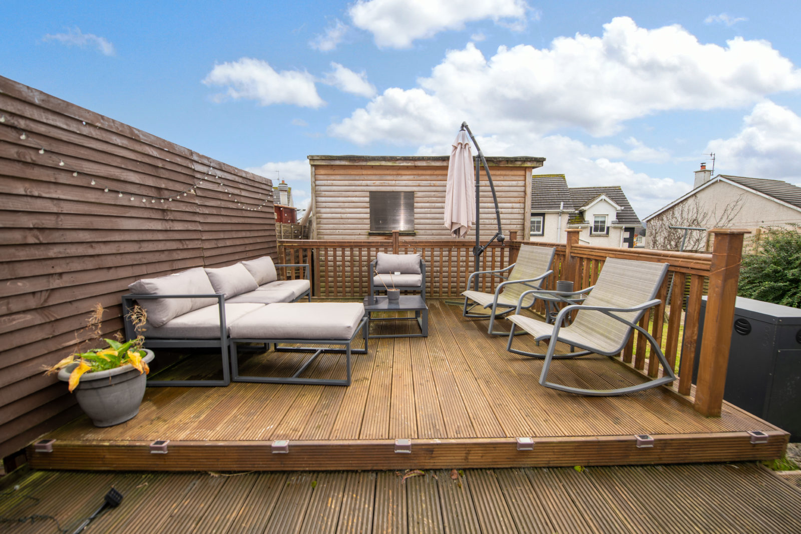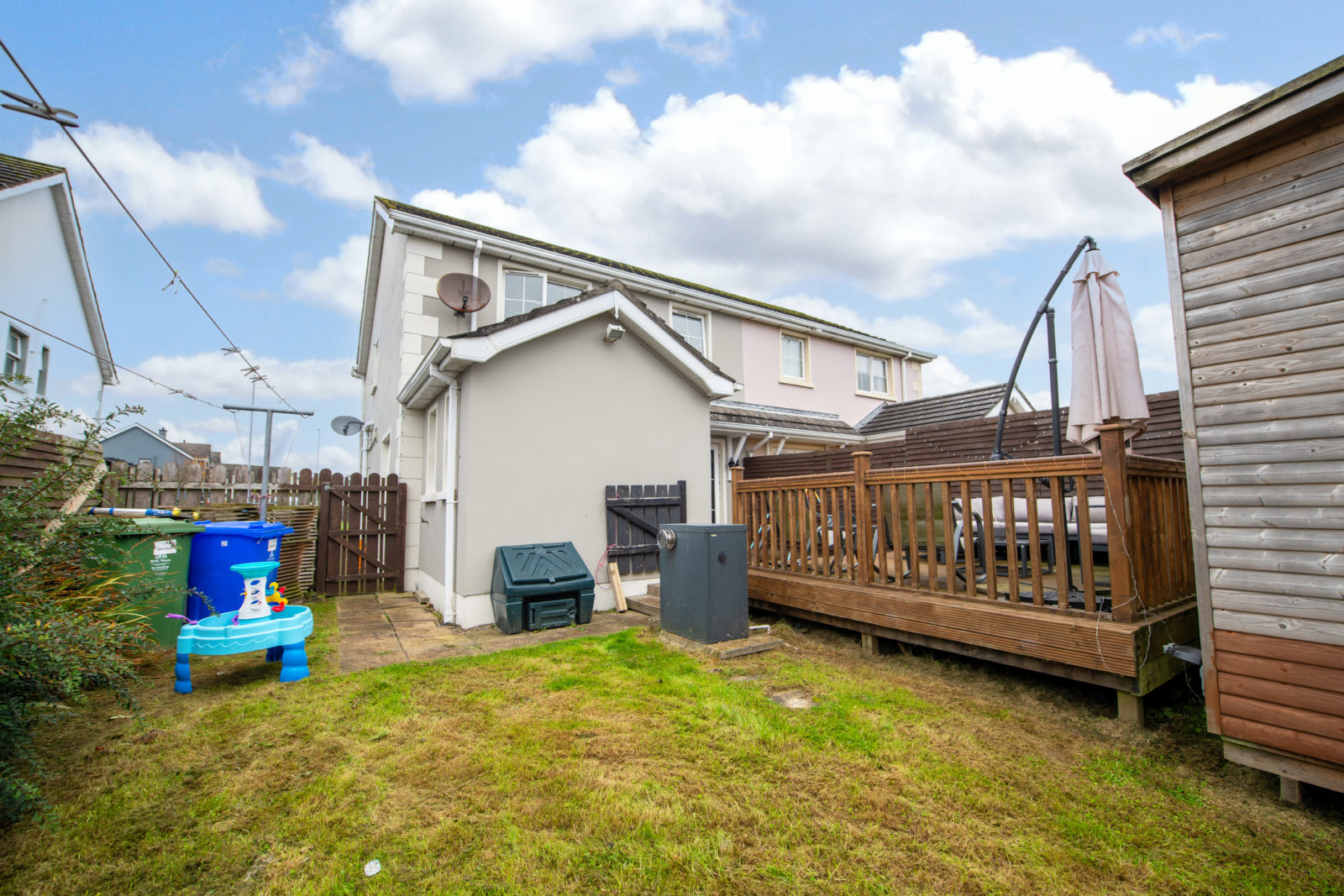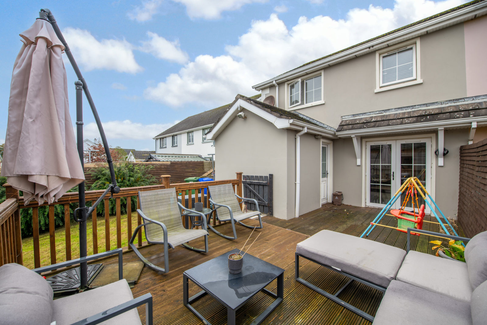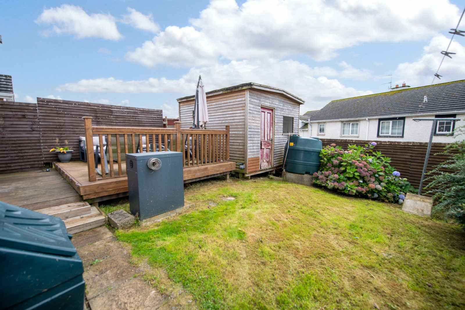 Outside; (front) garden laid to lawn & enclosed by picket fencing, tarmac driveway provides off-street parking for two vehicles (rear) garden laid to lawn with an expansive decked section, perfect for entertaining, enclosed by picket fencing, timber garden shed with electric supply