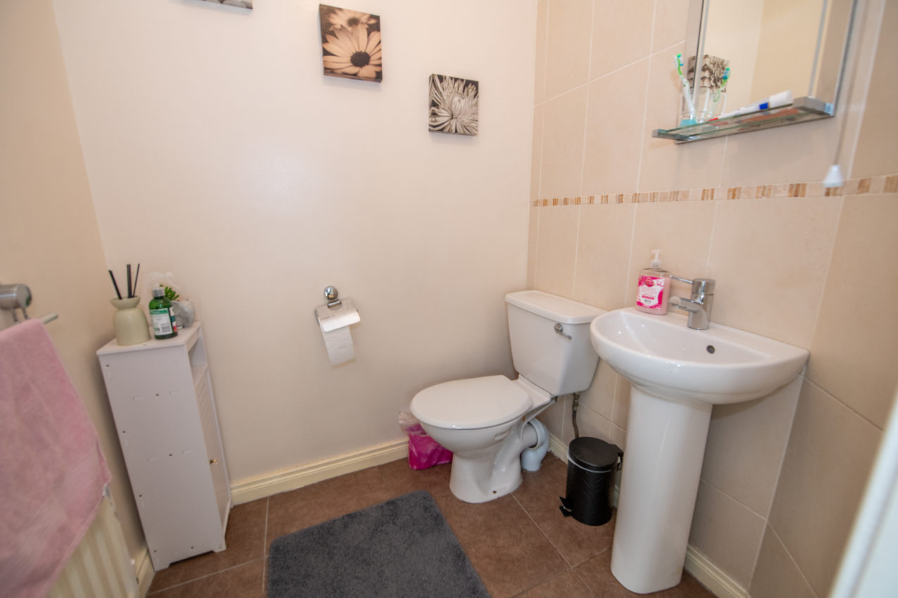 Family Bathroom; 2.27m x 3.07m white three-piece suite, telephone mixer taps over the bath, fully tiled walls & tiled flooring, finished to a high standard