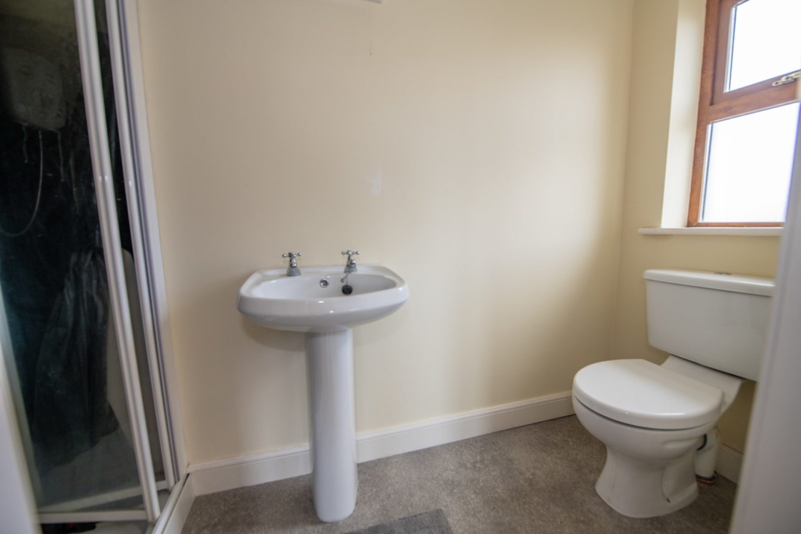 En-Suite; 1.04m x 2.88m white two-piece suite with separate shower enclosure fitted with electric Triton T90xr shower