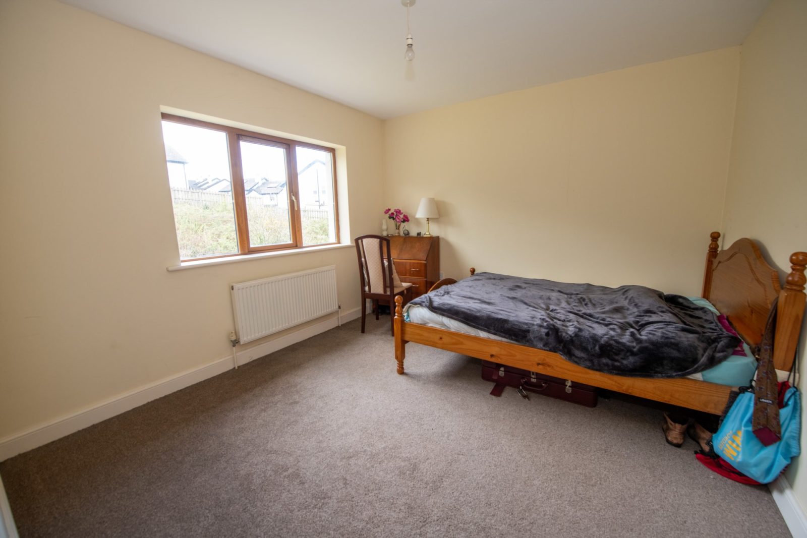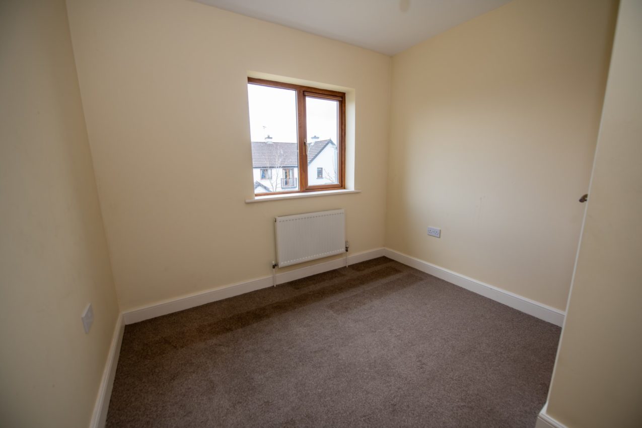 Bedroom 2; 2.83m x 2.78m (front) double bedroom, carpeted flooring, built-in wardrobe, enjoying excellent views over Letterkenny Town Centre, O’Donnell Park GAA grounds, and Cathedral