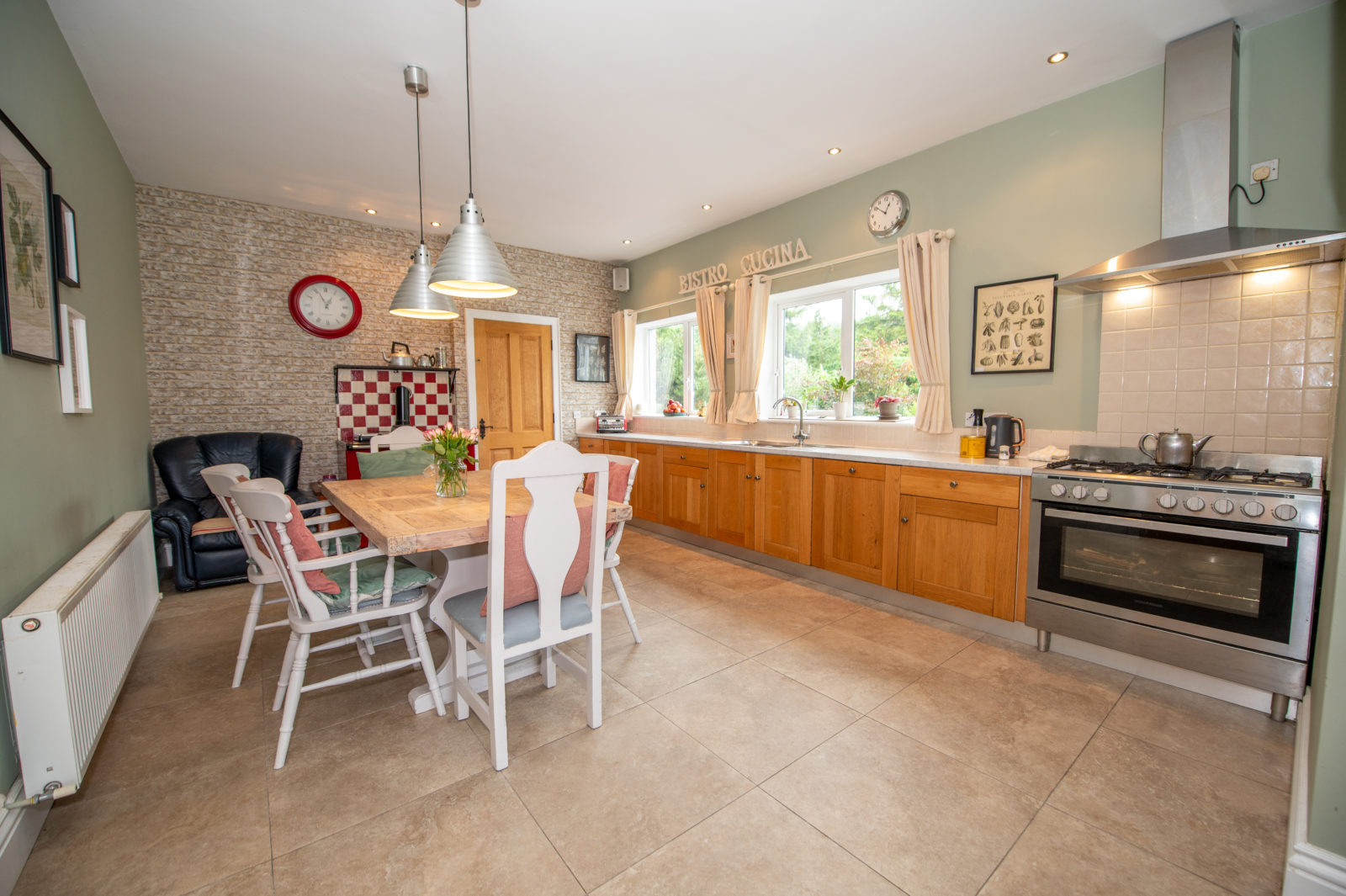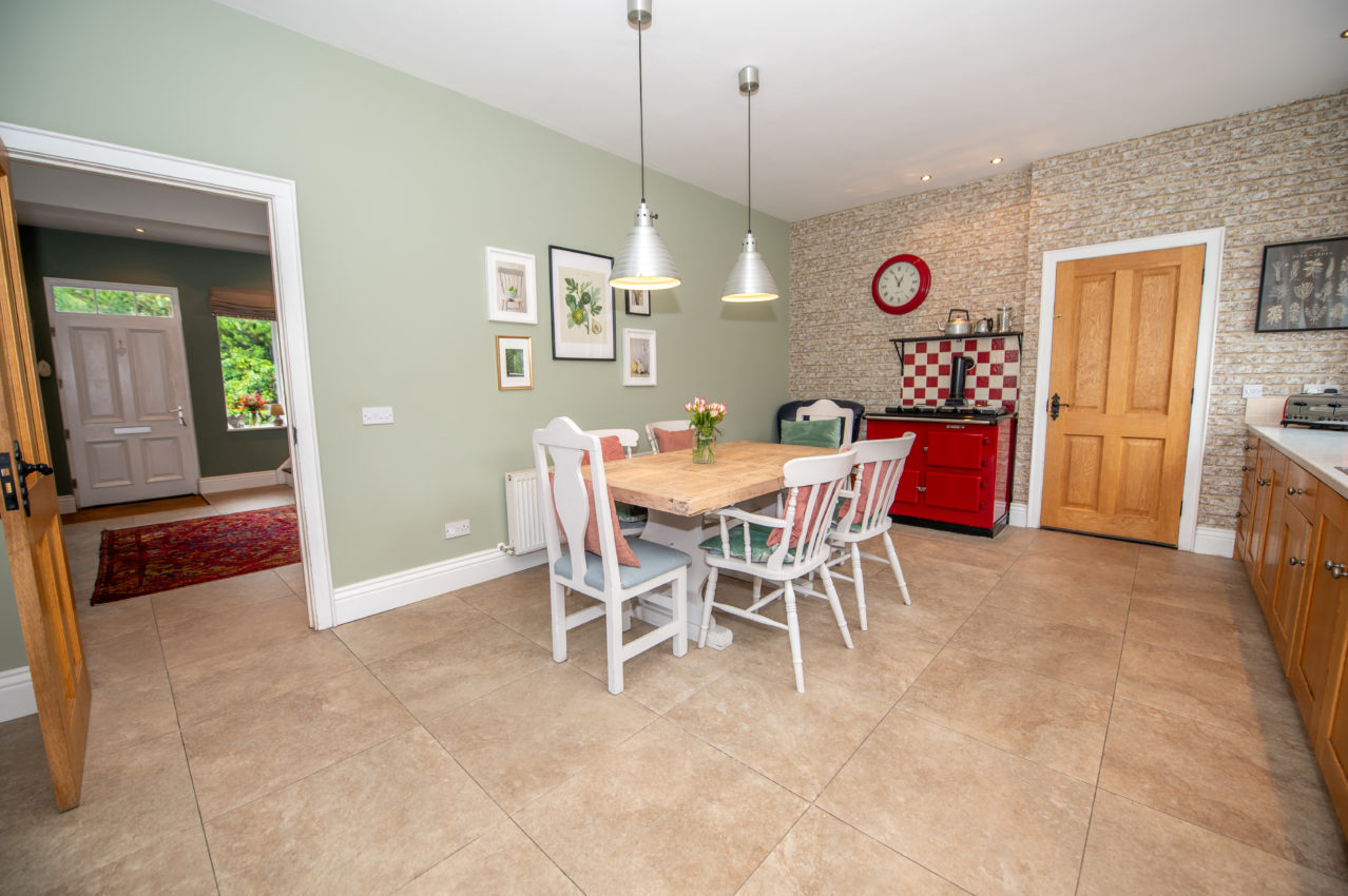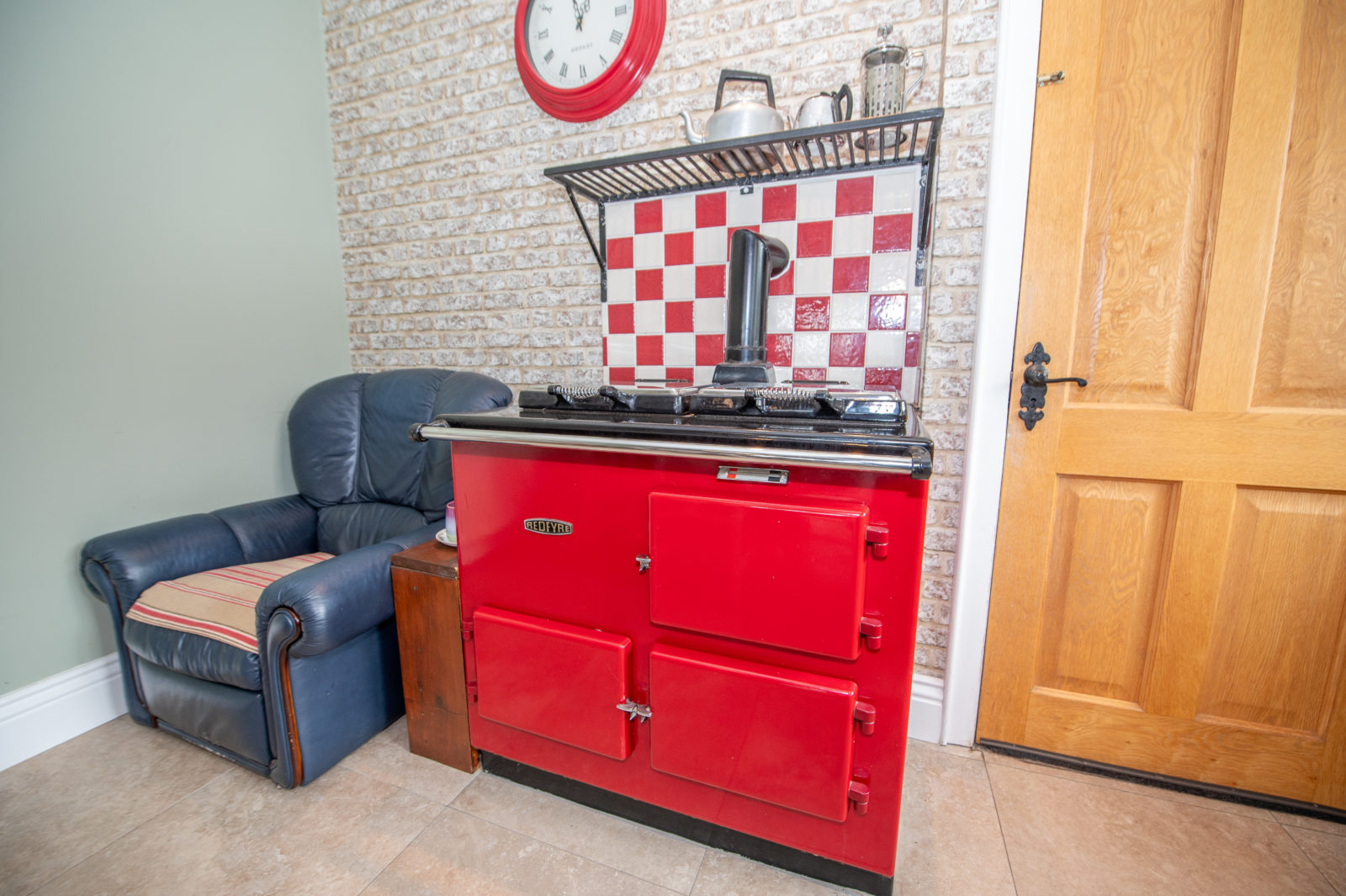 Kitchen / Dinette; 7.37m x 4.03m A large open-plan space, comprehensively fitted with wall & base units, work surfaces with tiled surrounds, stainless steel sink, cooker with extractor hood over, ‘Redfyre’ oil range, tiled flooring, recessed lighting throughout, Integrated dishwasher and access to a fully shelved walk-in pantry