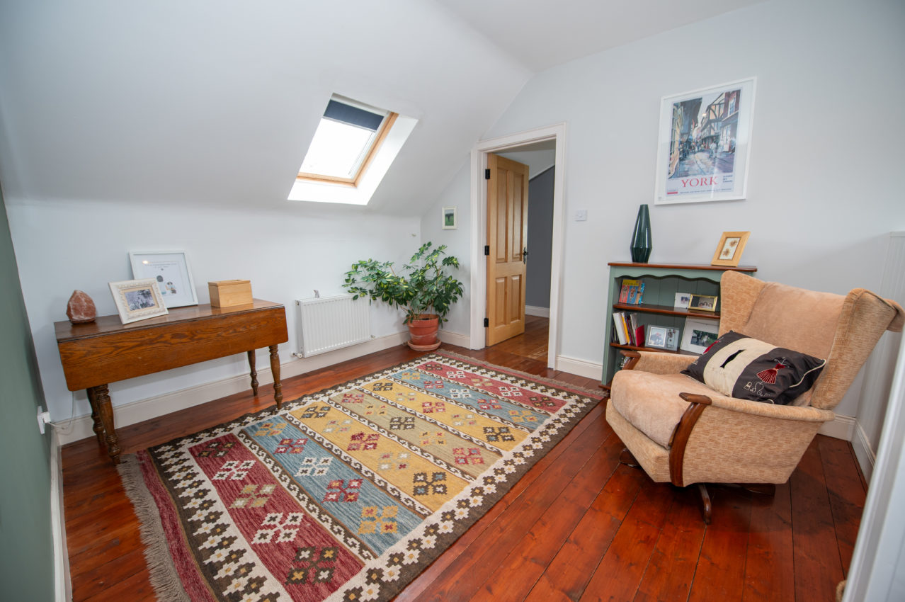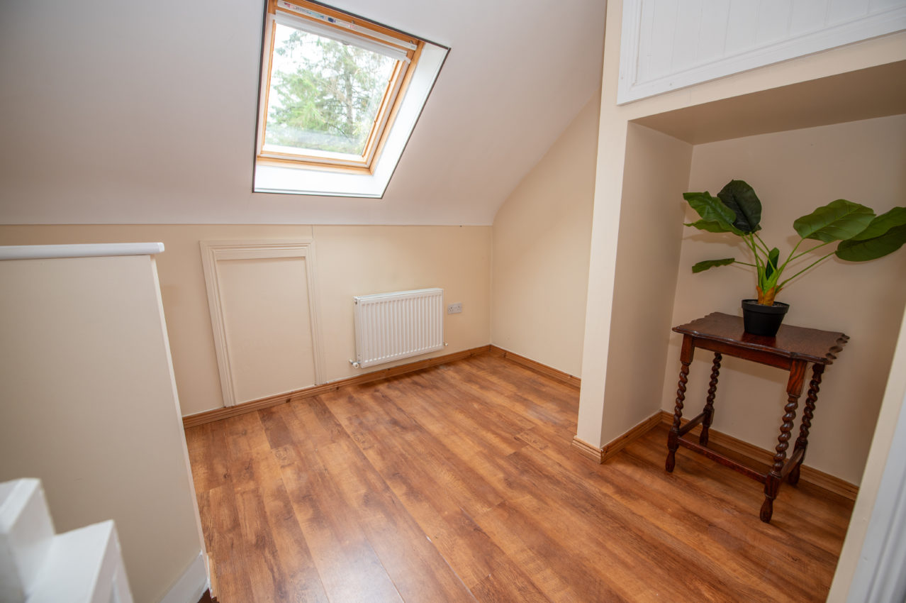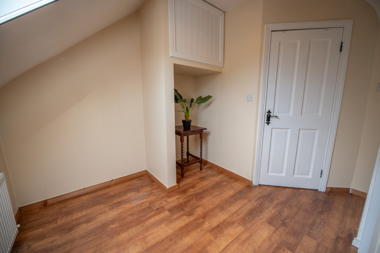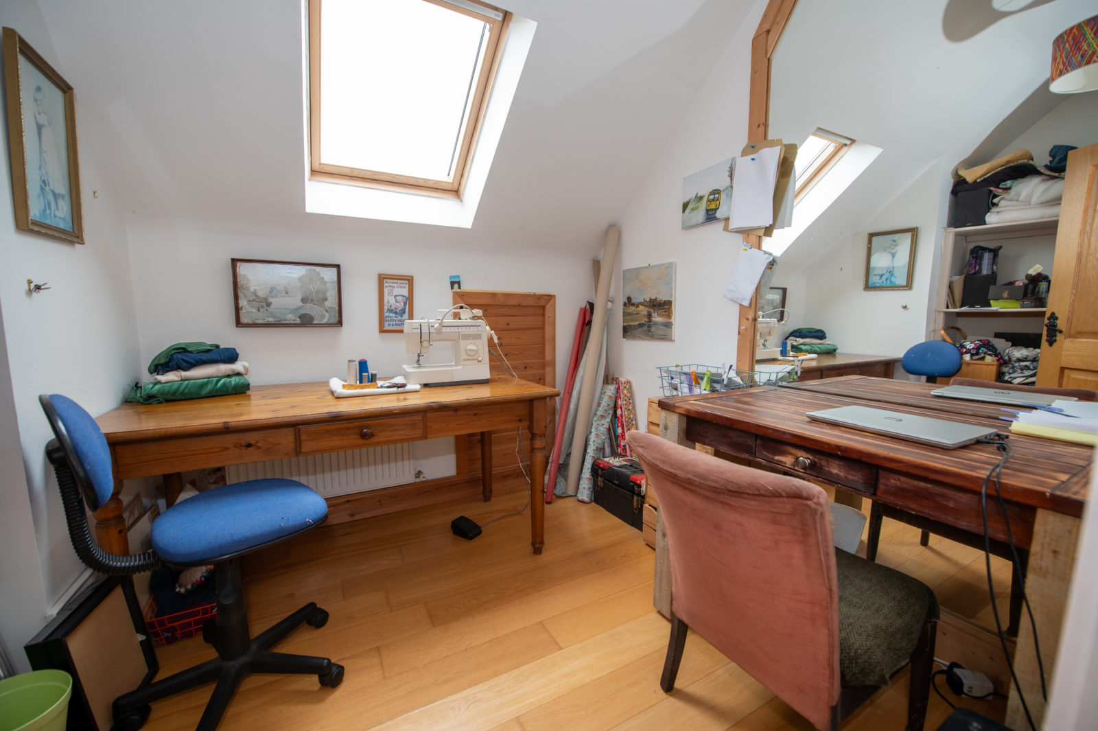 Office; 2.85m x 2.35m timber flooring, Velux window, fitted shelving—ideal for remote working