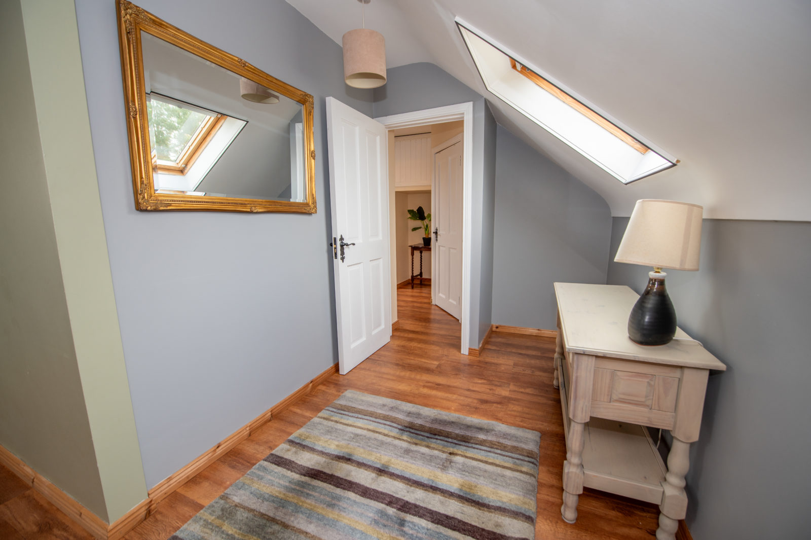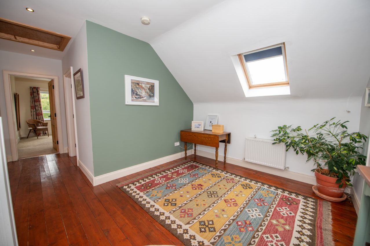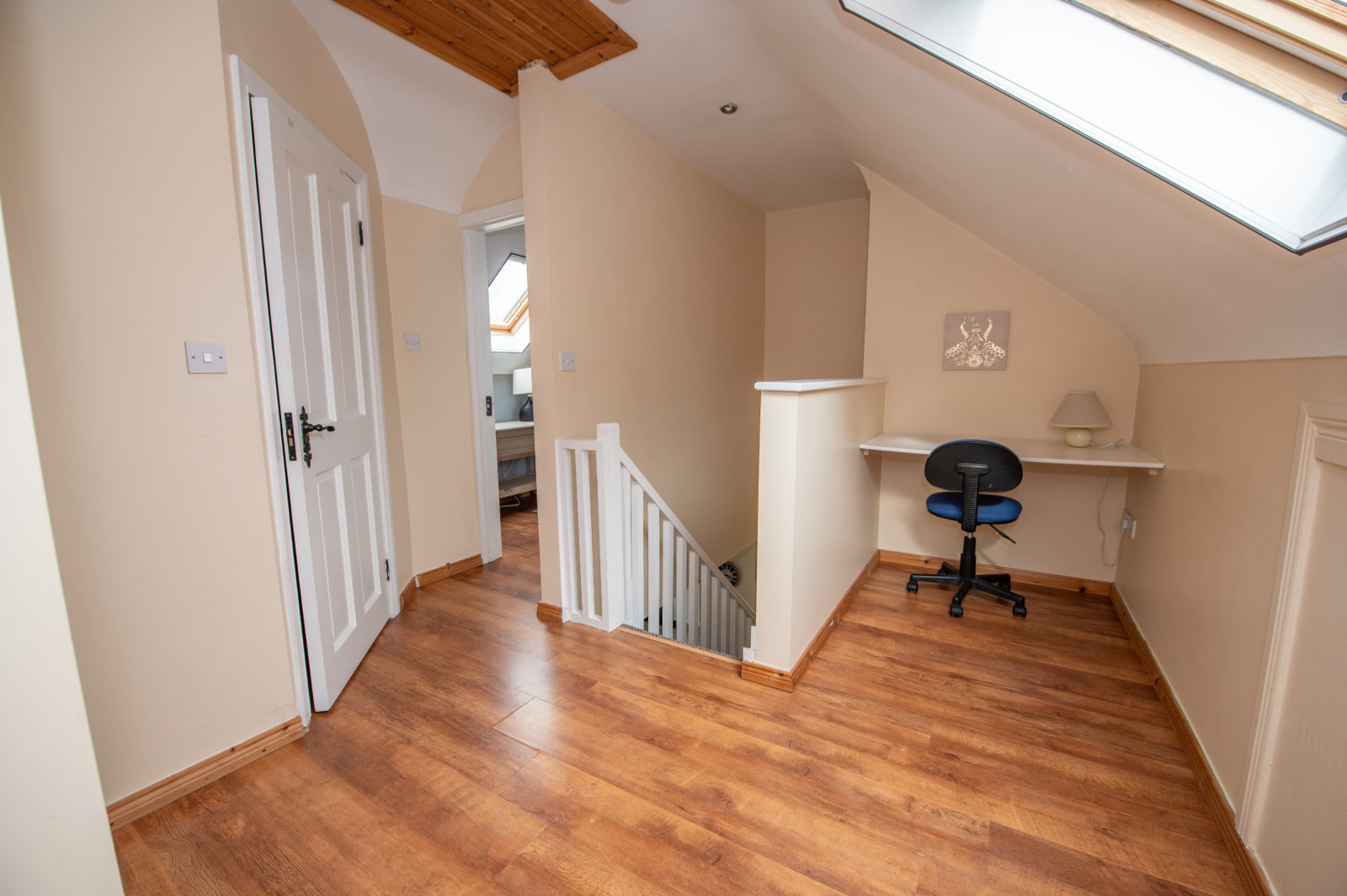 Landing; 3.27m x 3.90m velux window, fitted office desk, laminated flooring, loft access