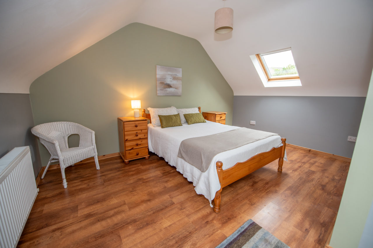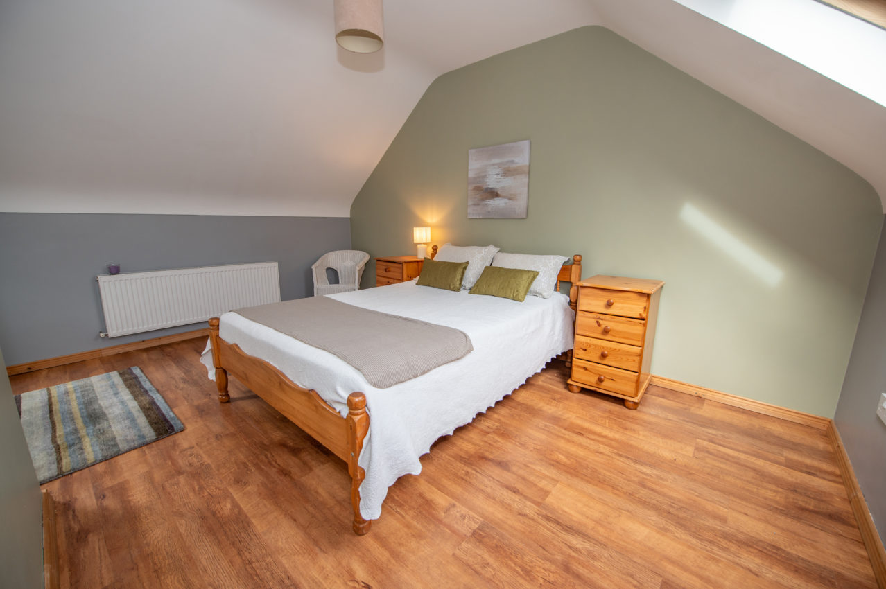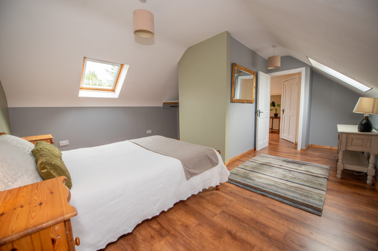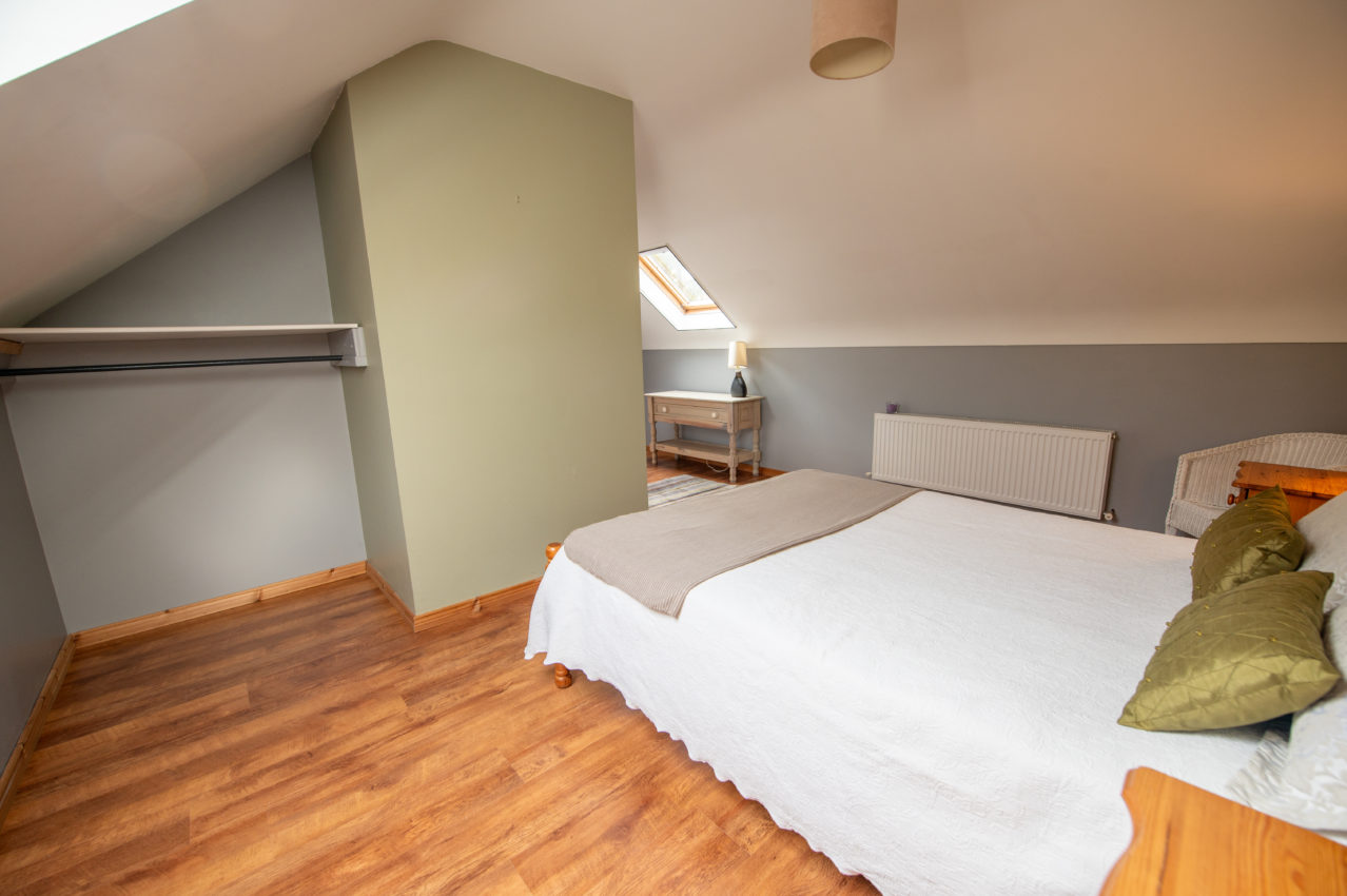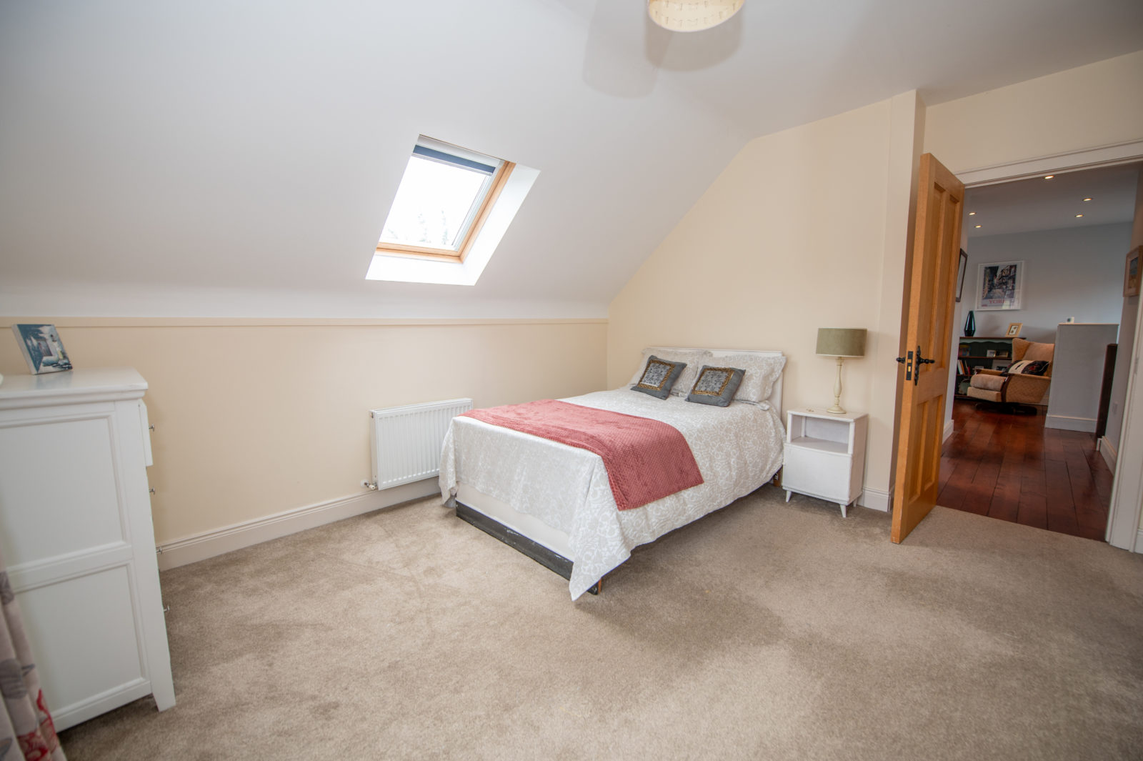 Bedroom 1; 4.43m x 5.01m laminate wooden flooring, twin Velux windows, fitted hanging rails.
