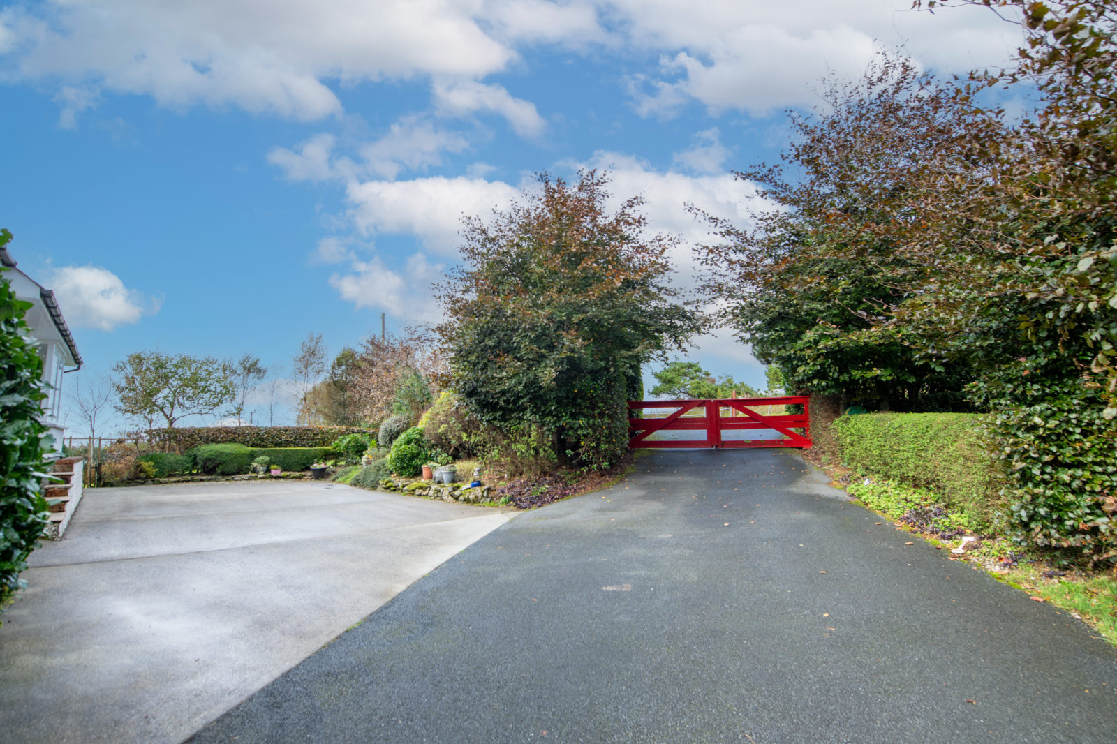 Gardens & Grounds; The property is beautifully screened from the road by mature trees, offering a high degree of privacy. Accessed via wooden electric gates, a tarmacadam driveway leads to the front of the main residence and continues via a concrete driveway to the rear and onward to the second property.