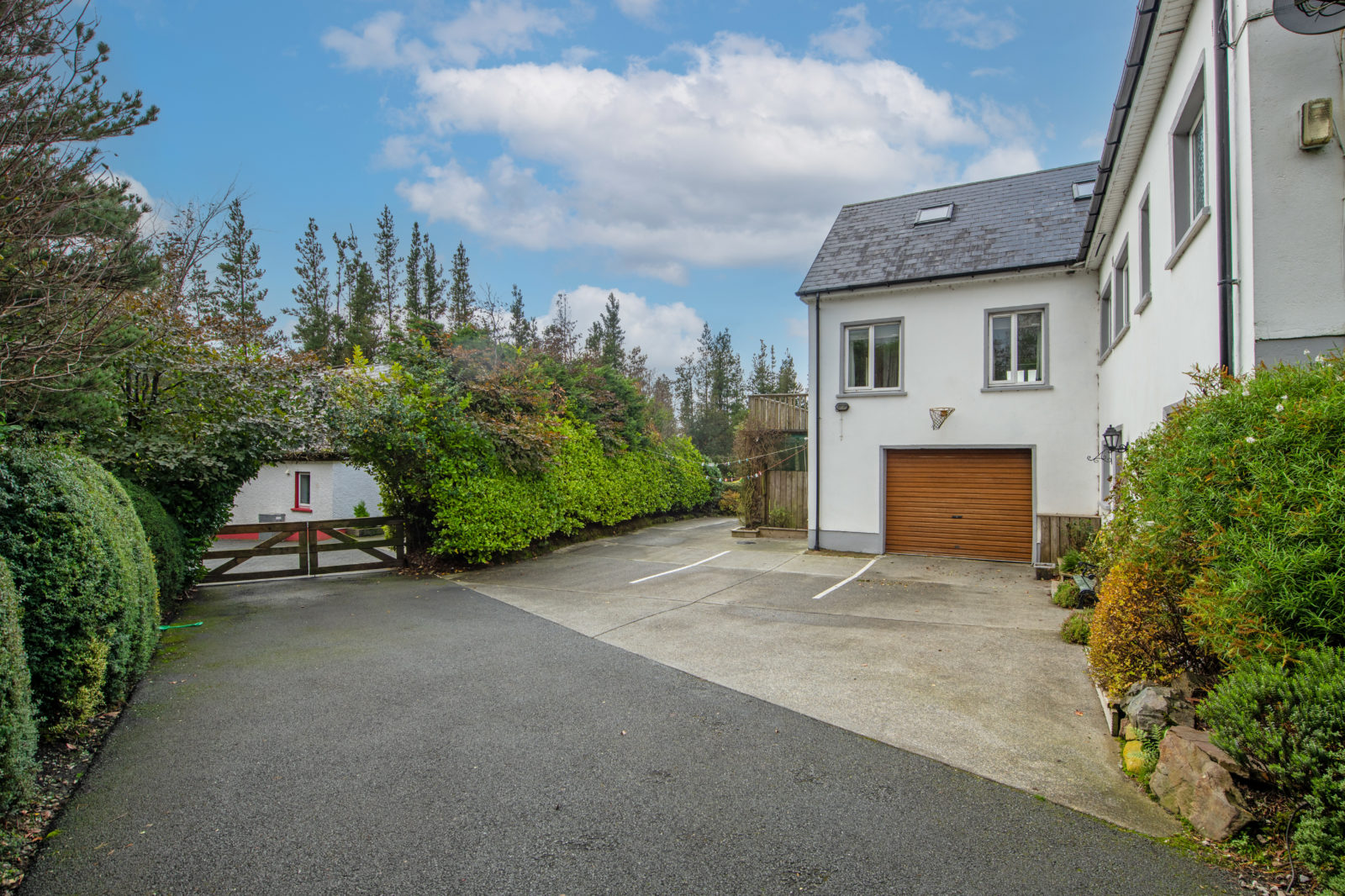 Set behind electric gates on a beautifully private site extending to approximately 0.82 acres, this exceptional two-residence estate represents a rare opportunity to acquire a home of true scale, flexibility, and distinction. Presented to the market by Brendan McGee @ Franklins, the principal residence extends to an impressive c. 4,498 sq ft and is thoughtfully arranged over three levels, including a substantial basement garage with electric door. Designed with both luxury and lifestyle in mind, the home features expansive living accommodation along with a striking first-floor wraparound deck, ideal for entertaining and enjoying the tranquil surroundings.
