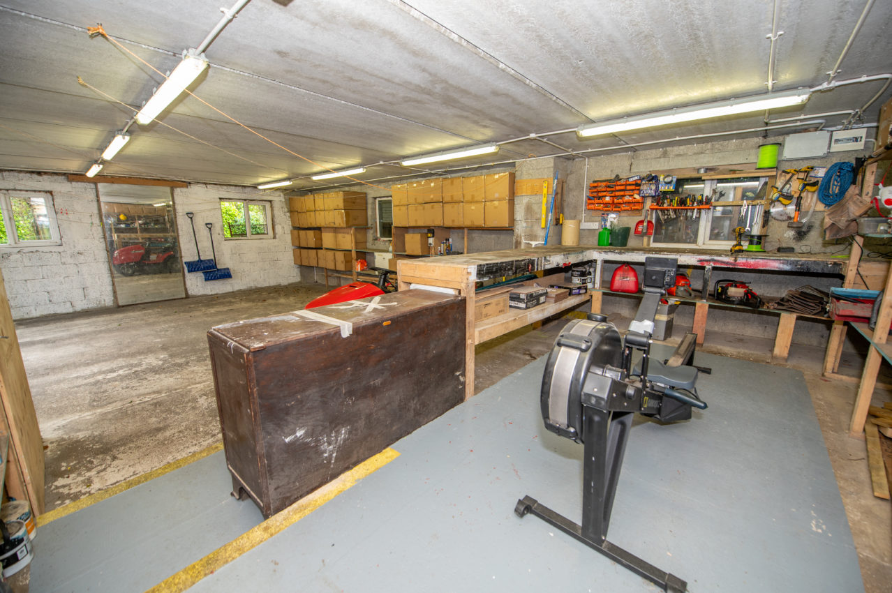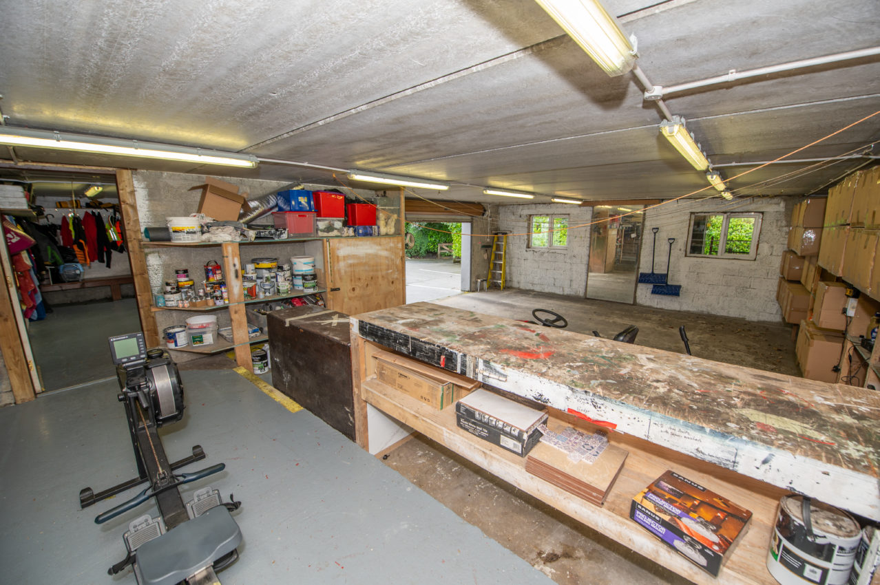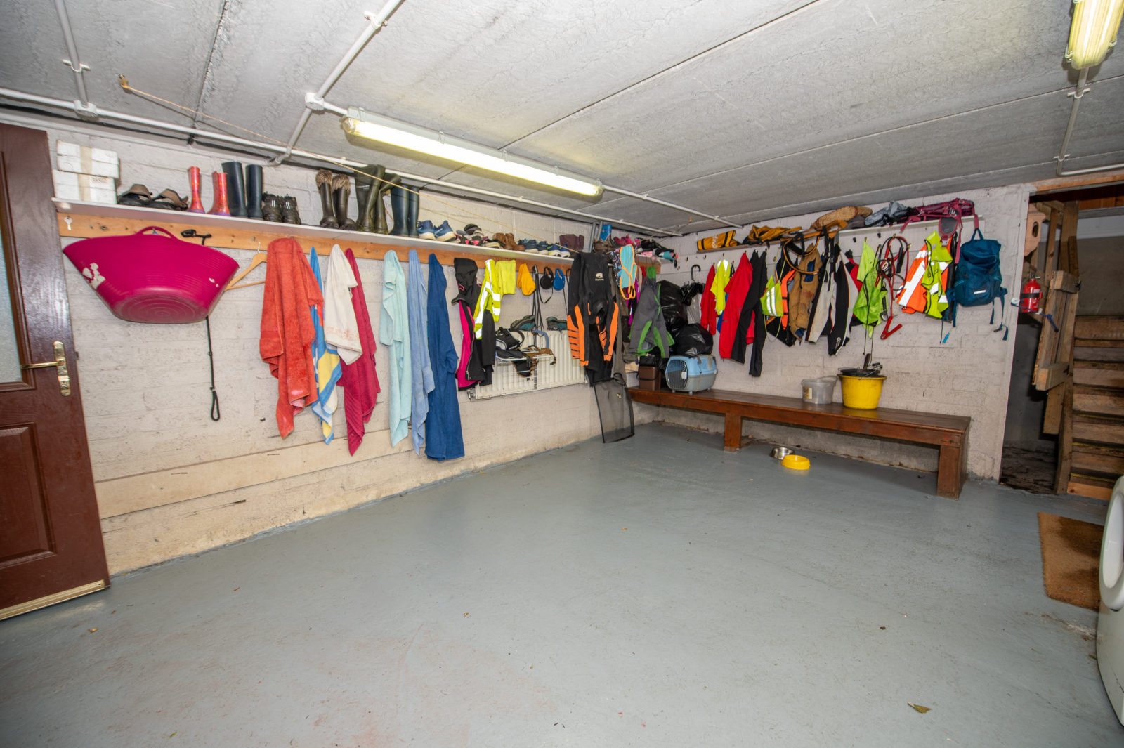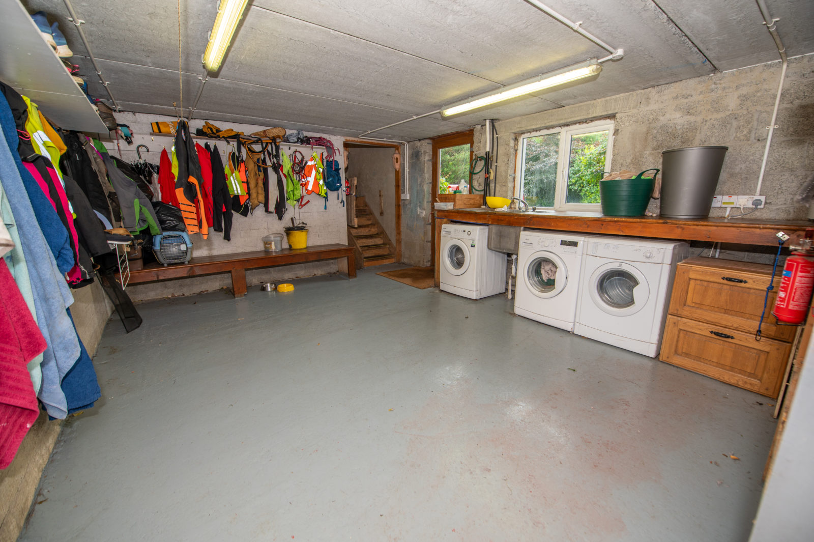 Lower Ground Floor Garage; Accessed via stairs from the kitchen, this large split-level garage provides excellent storage & workspace, ideal for DIY, plumbed for washing machine & wired for tumble dryer