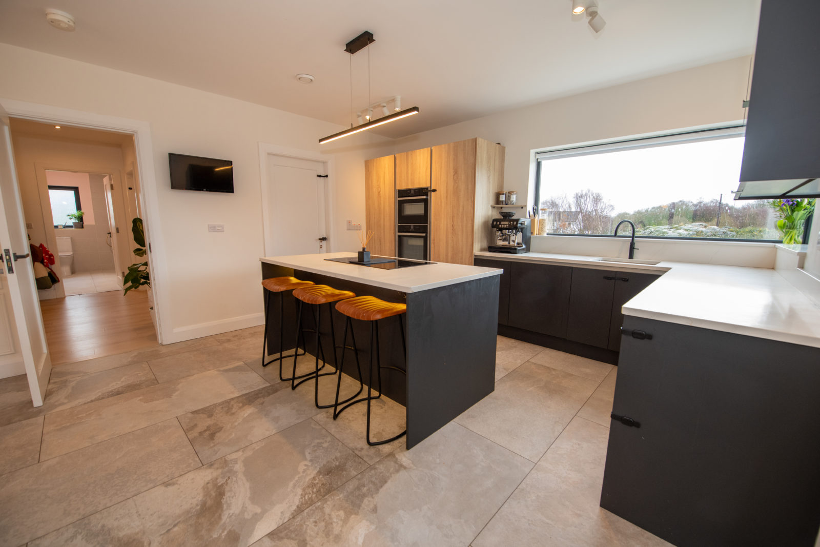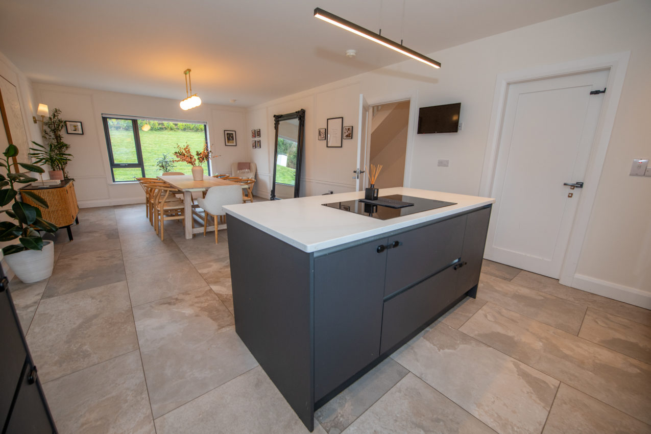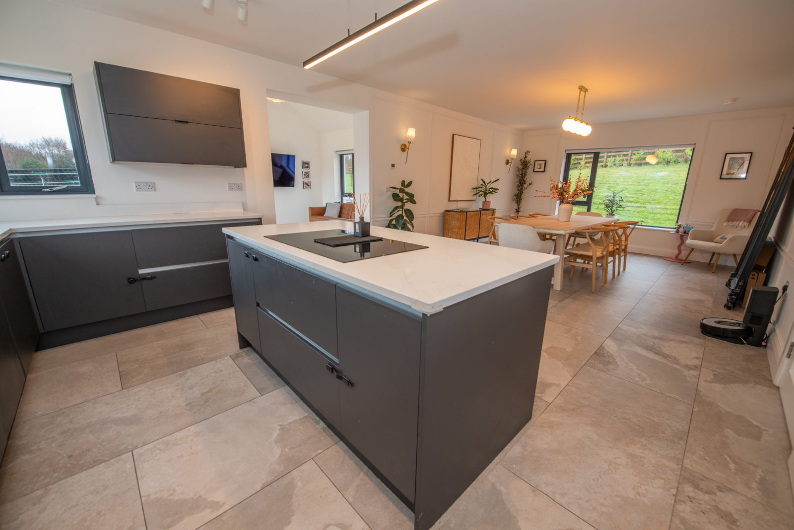 - Stunning Open Plan Kitchen / Dining / Sunroom – High-spec finish with quartz worktops, island unit and premium appliances.