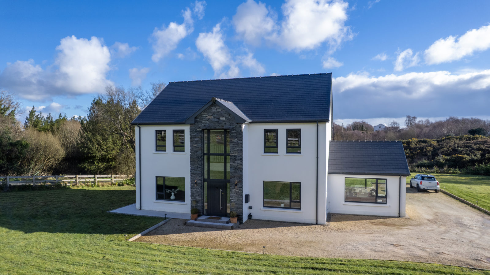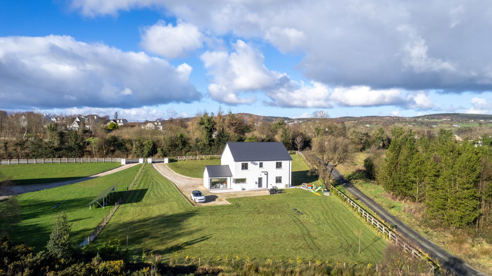 Nestled within the highly sought-after residential area of Woodlands, Letterkenny, this exceptional A-rated family home (built 2022) offers contemporary luxury, generous living space and an outstanding 0.66 acre site — the perfect setting for modern family life.