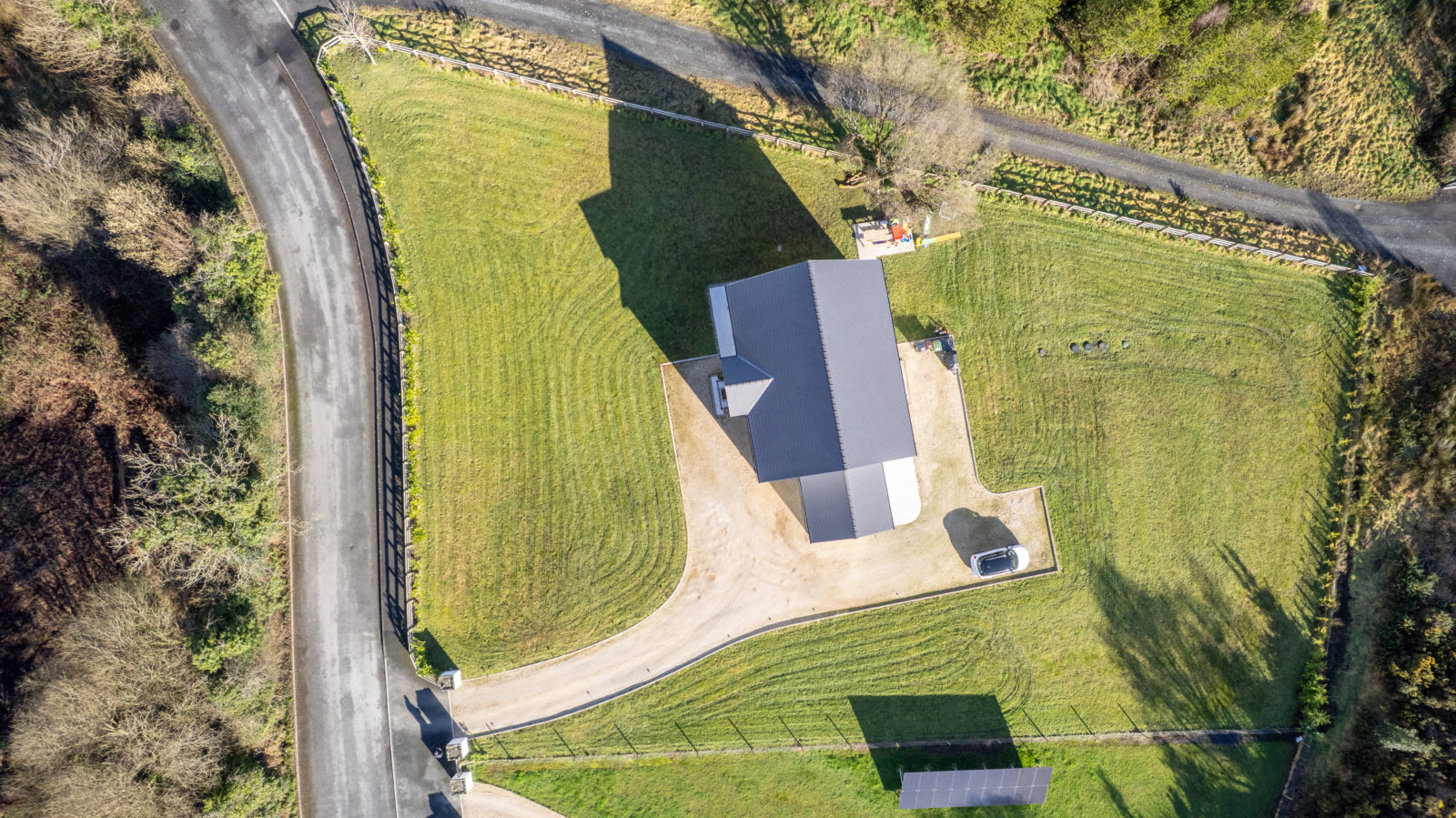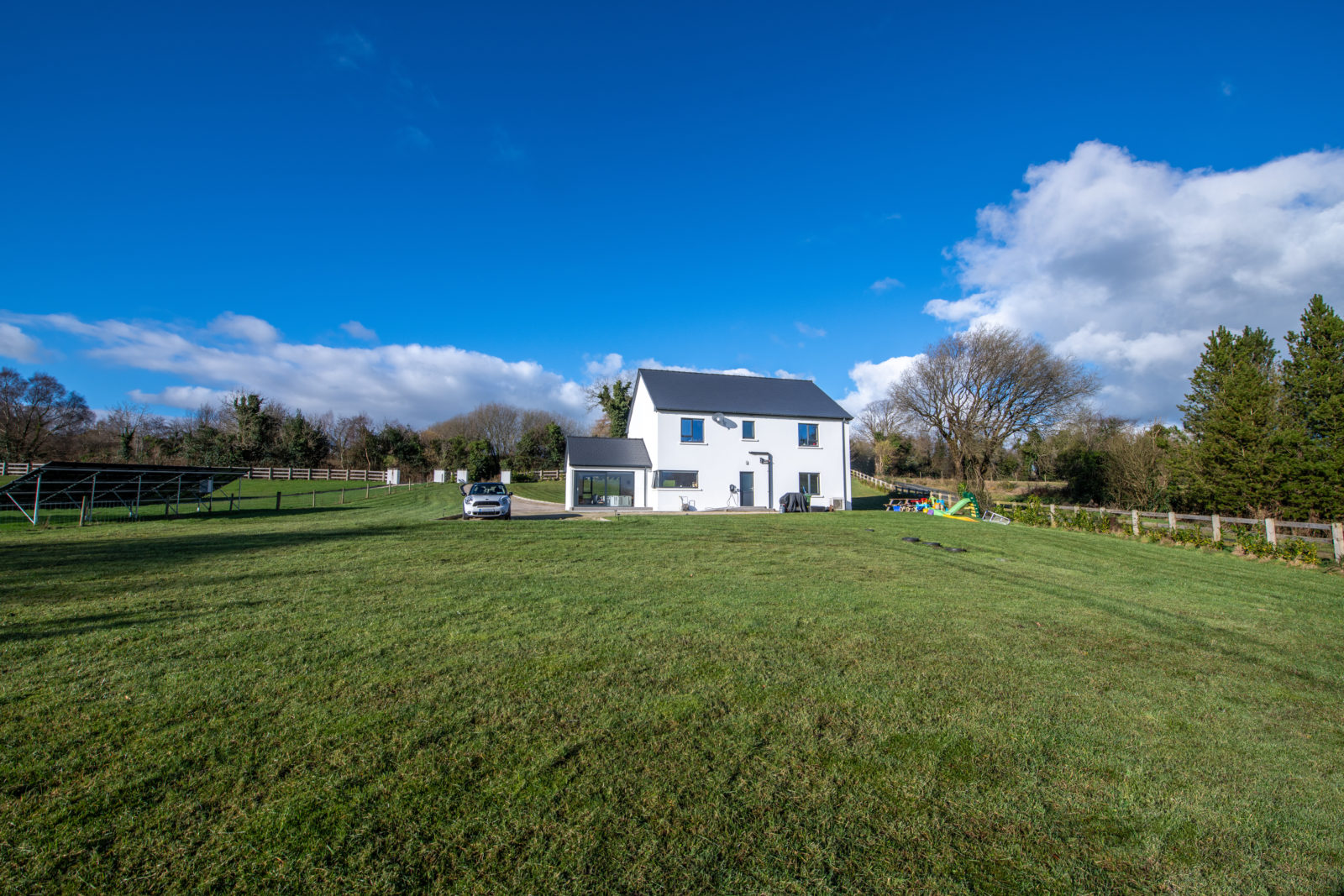 Grounds & Exterior; Set on an overall site of approximately 0.66 acres, the property is accessed via block-built entrance pillars leading to a kerbed gravel driveway with ample parking for multiple vehicles, extensive front and rear gardens are laid to lawn, offering a safe and secure space ideal for young children. Ranch-style fencing and post-and-wire boundaries enhance the sense of space while maintaining privacy.